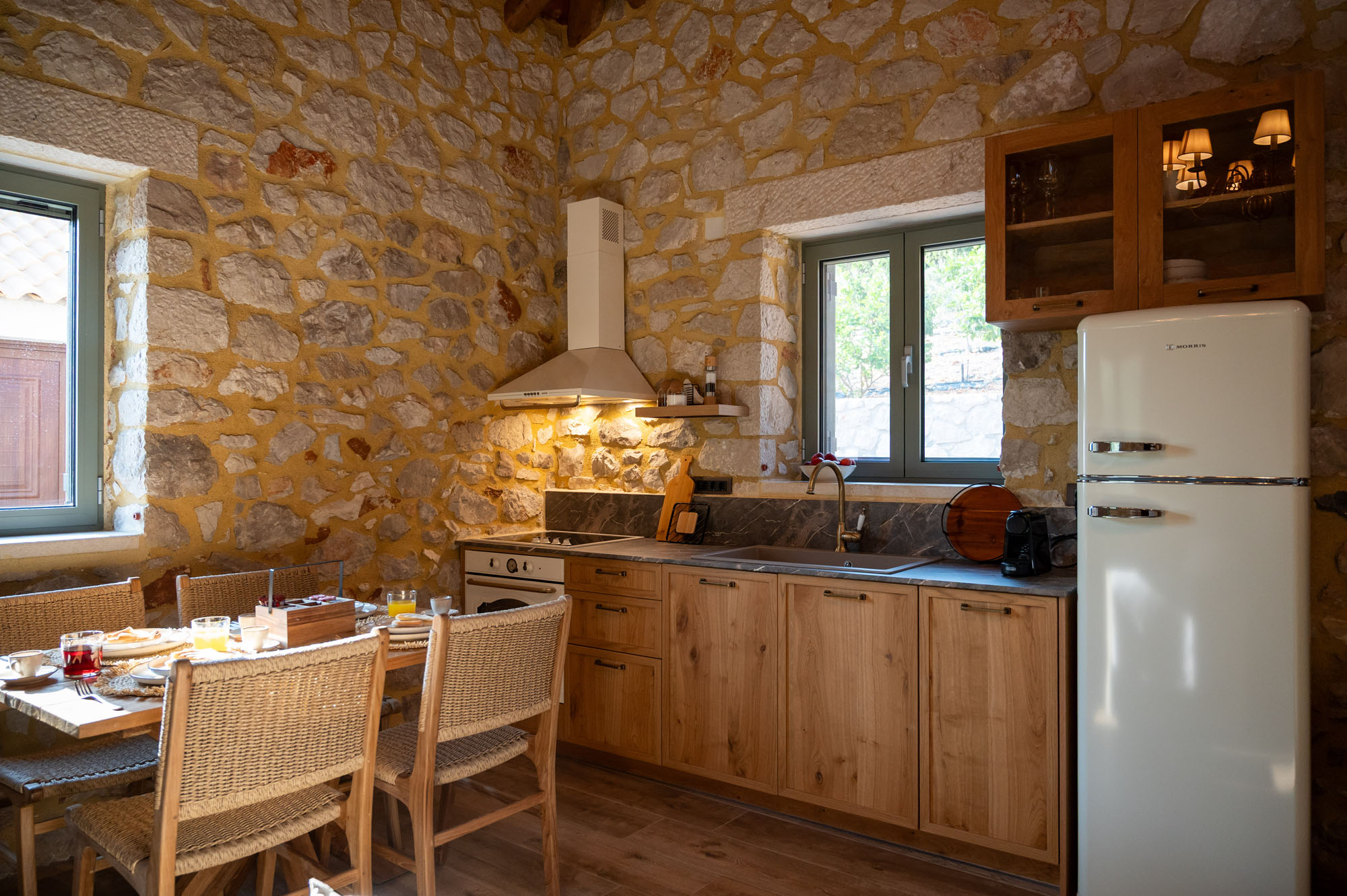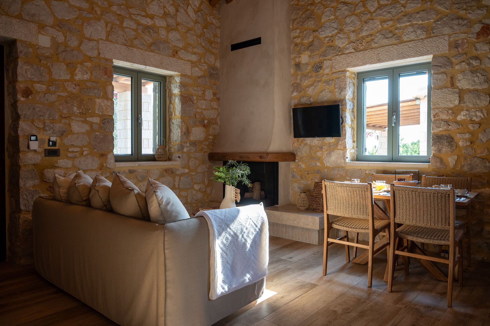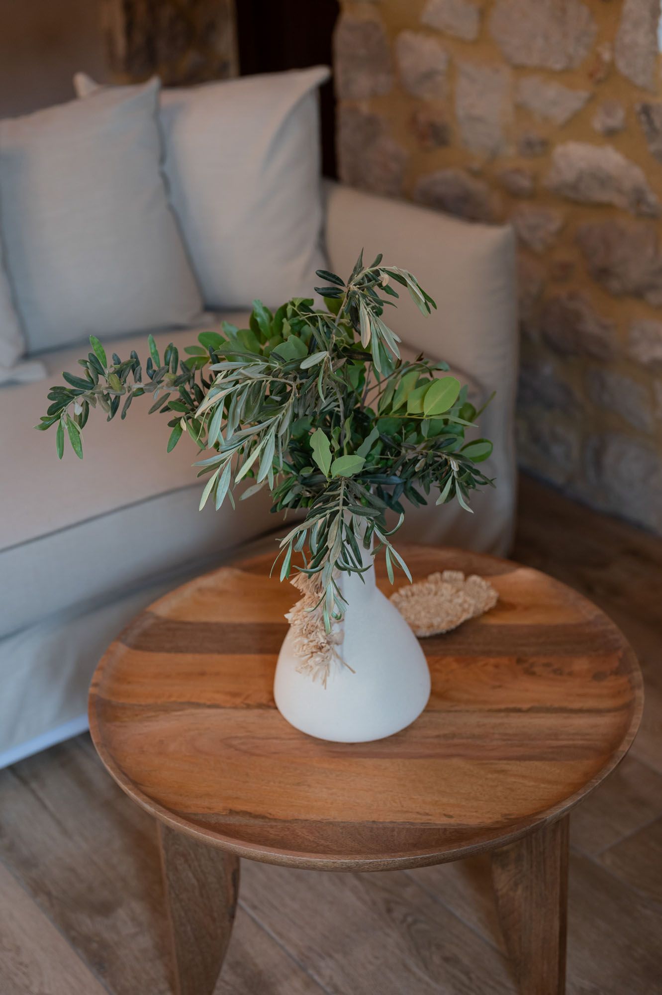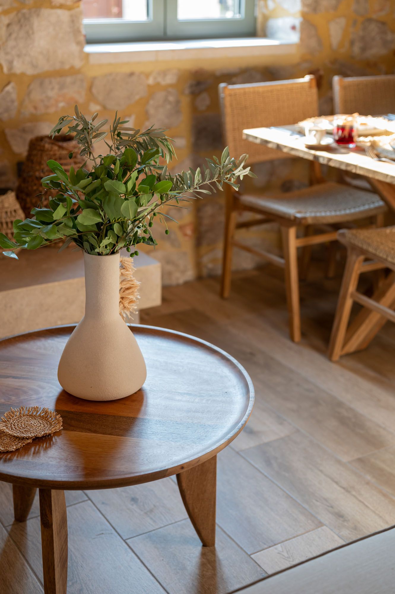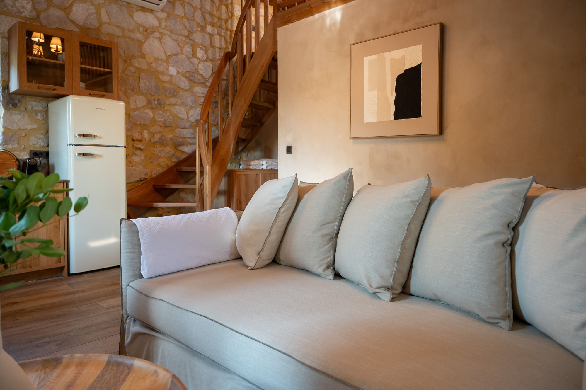 Decorated in earthy, natural tones, the space exudes an organic sense of tranquility. Woven furniture with warm textures, wood, and raw materials define the suite’s style — striking a delicate balance between sophistication and unpretentious charm. The fully equipped kitchen offers every modern convenience with both functionality and flair, while air conditioning in all rooms ensures year-round comfort.