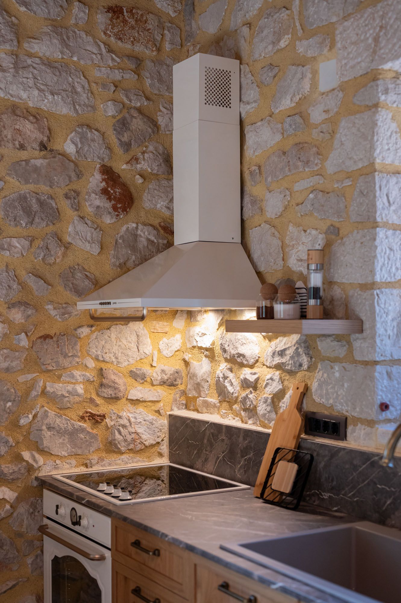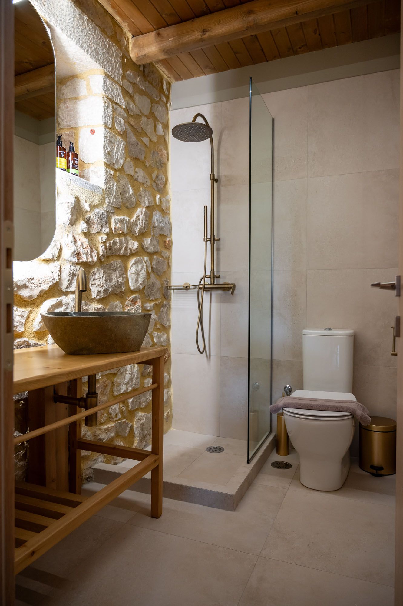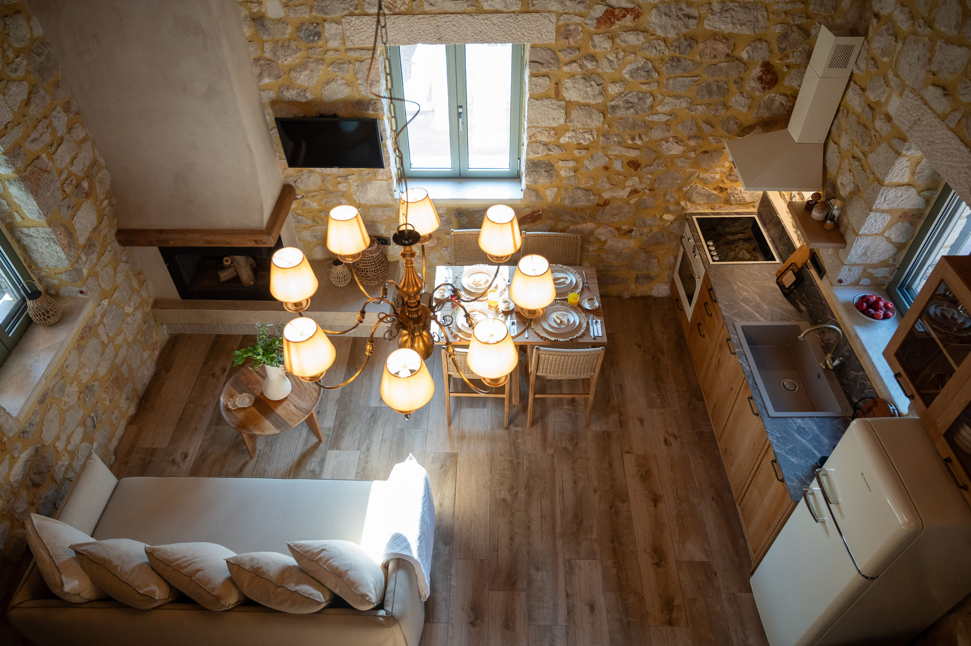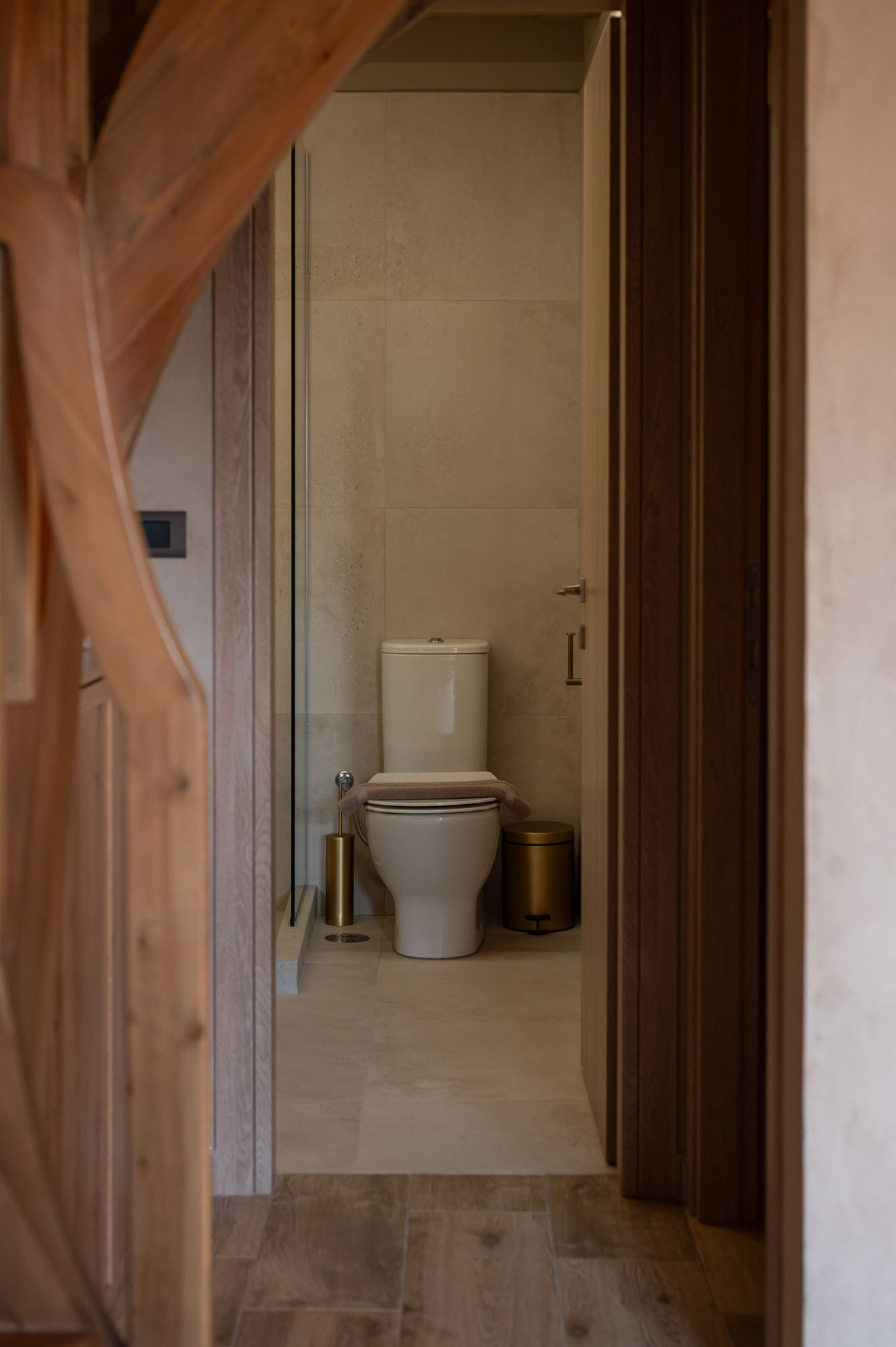 On the ground floor, you’ll find the first bedroom — a bright and welcoming space, where the warmth of traditional design meets modern touches that bring freshness and balance. A wooden staircase leads to the loft, home to the second bedroom: an atmospheric, almost dreamlike hideaway, where a skylight reveals the open sky and lets the morning light gently awaken you — as if nature itself is inviting you to begin again.