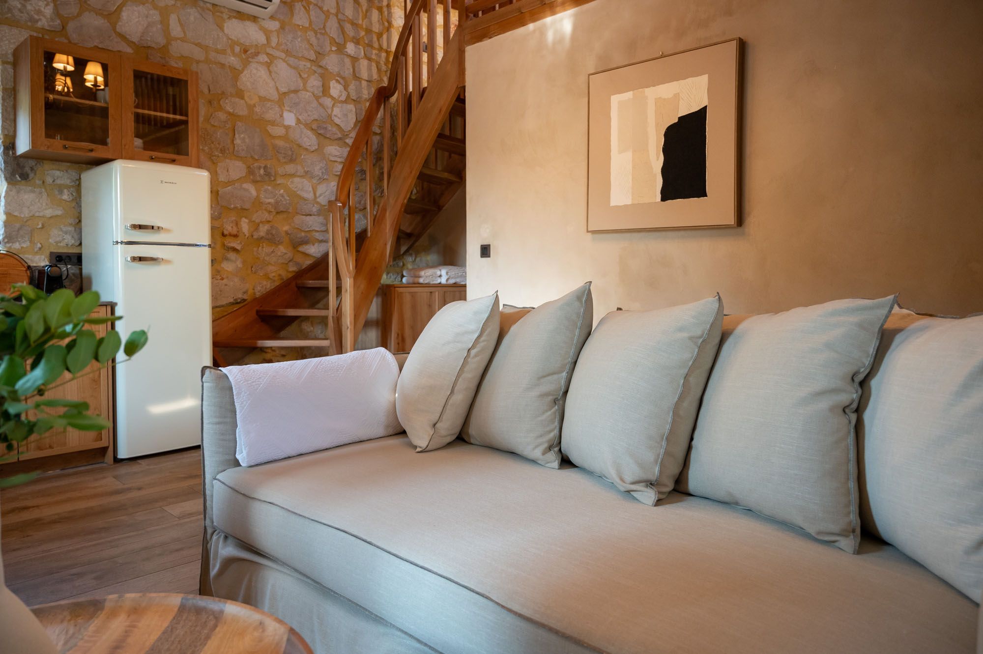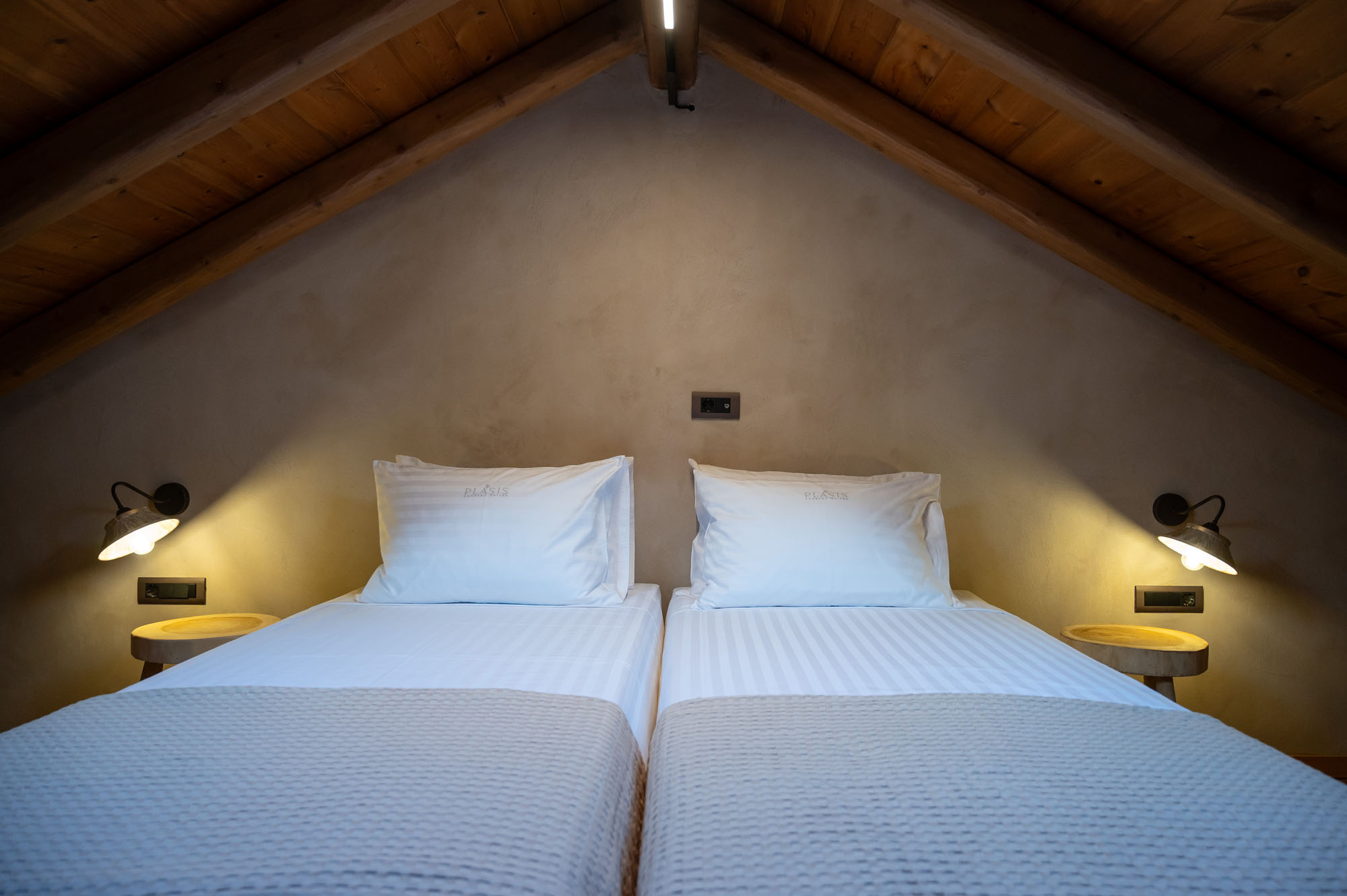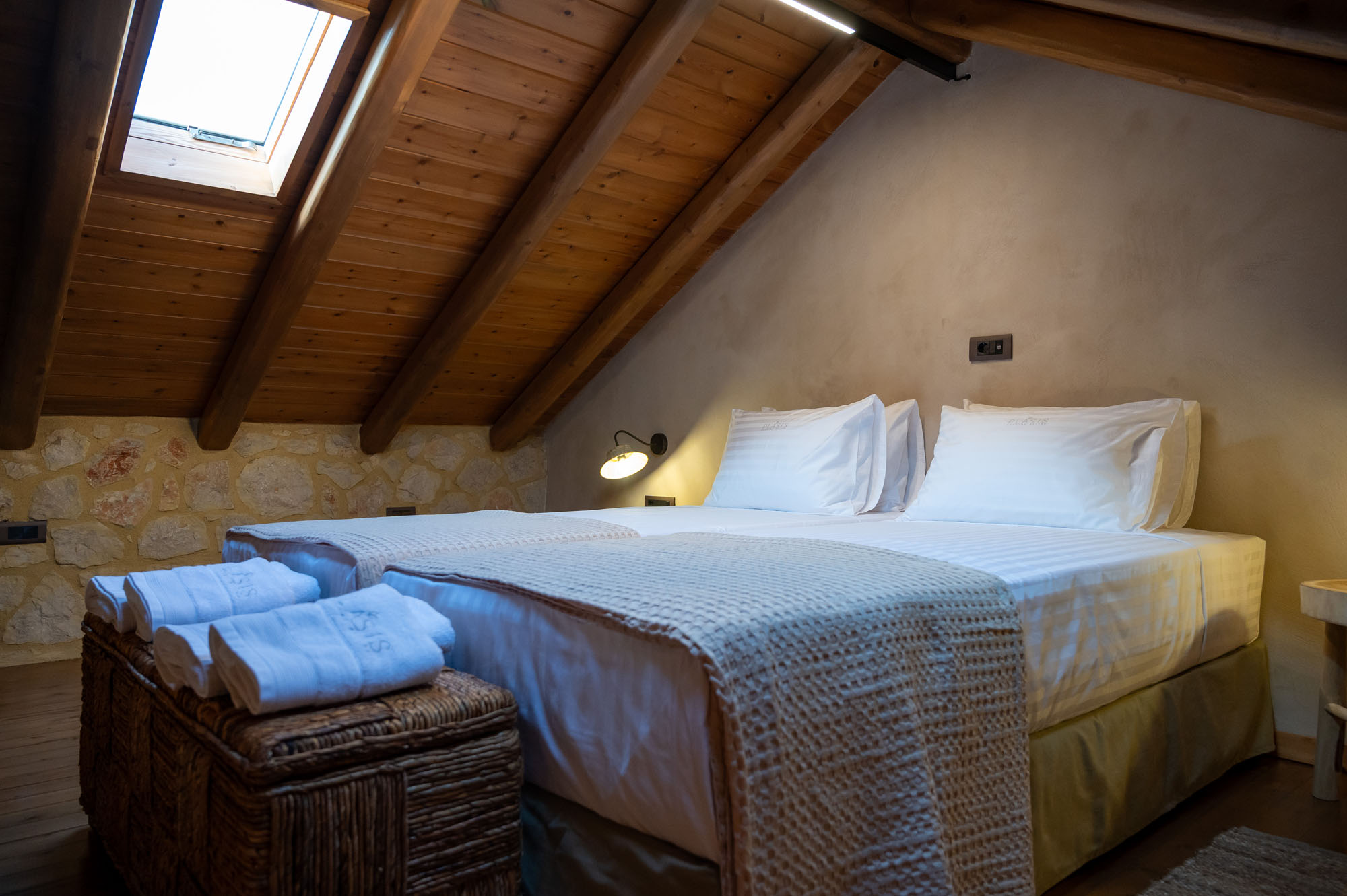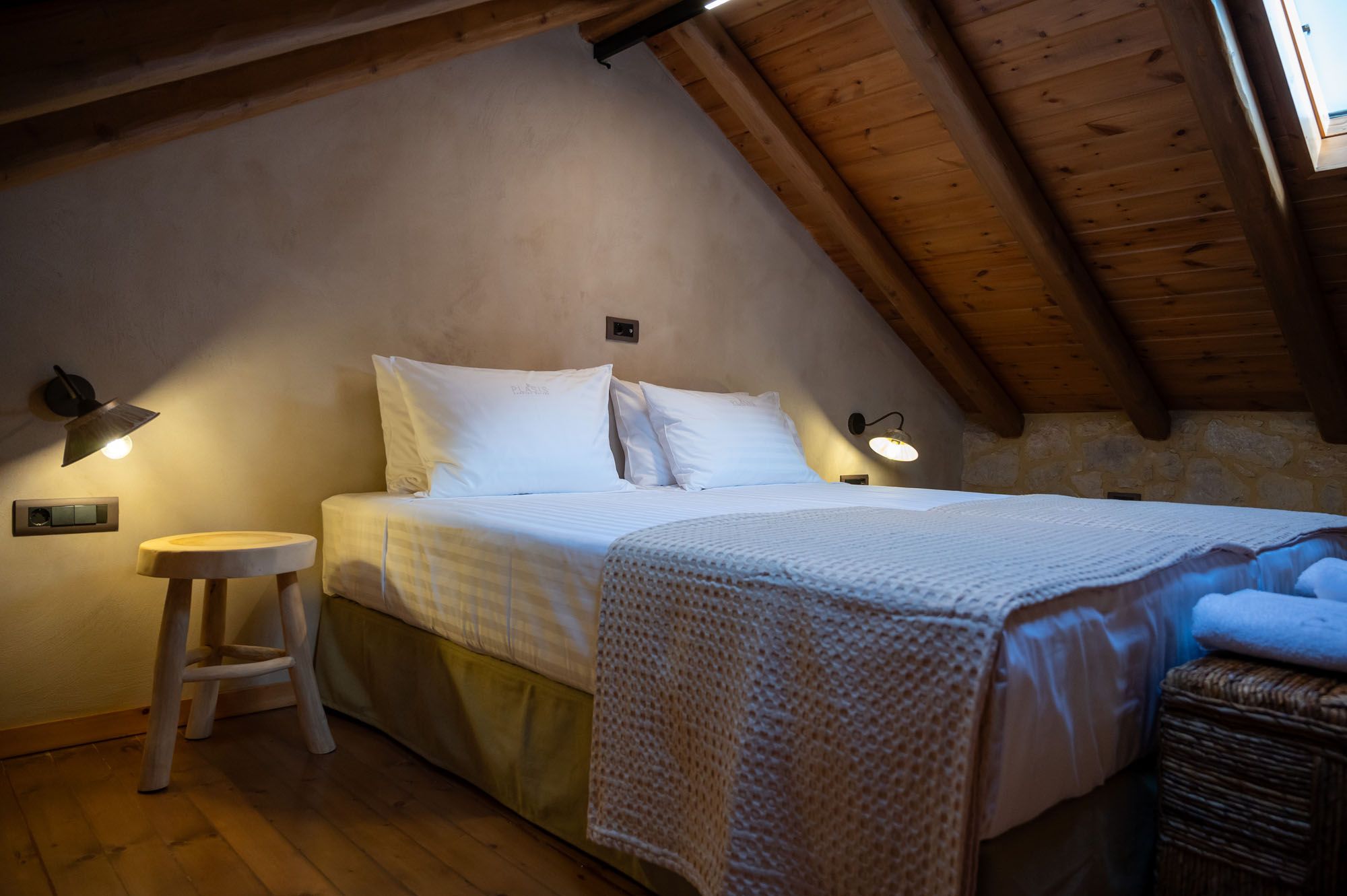 Spread across two levels, Suite No. 2 masterfully combines the authenticity of nature with the refined simplicity of modern luxury. Designed to accommodate up to four guests, it embraces comfort, aesthetics, and atmosphere in a way that feels both effortless and deeply intentional.