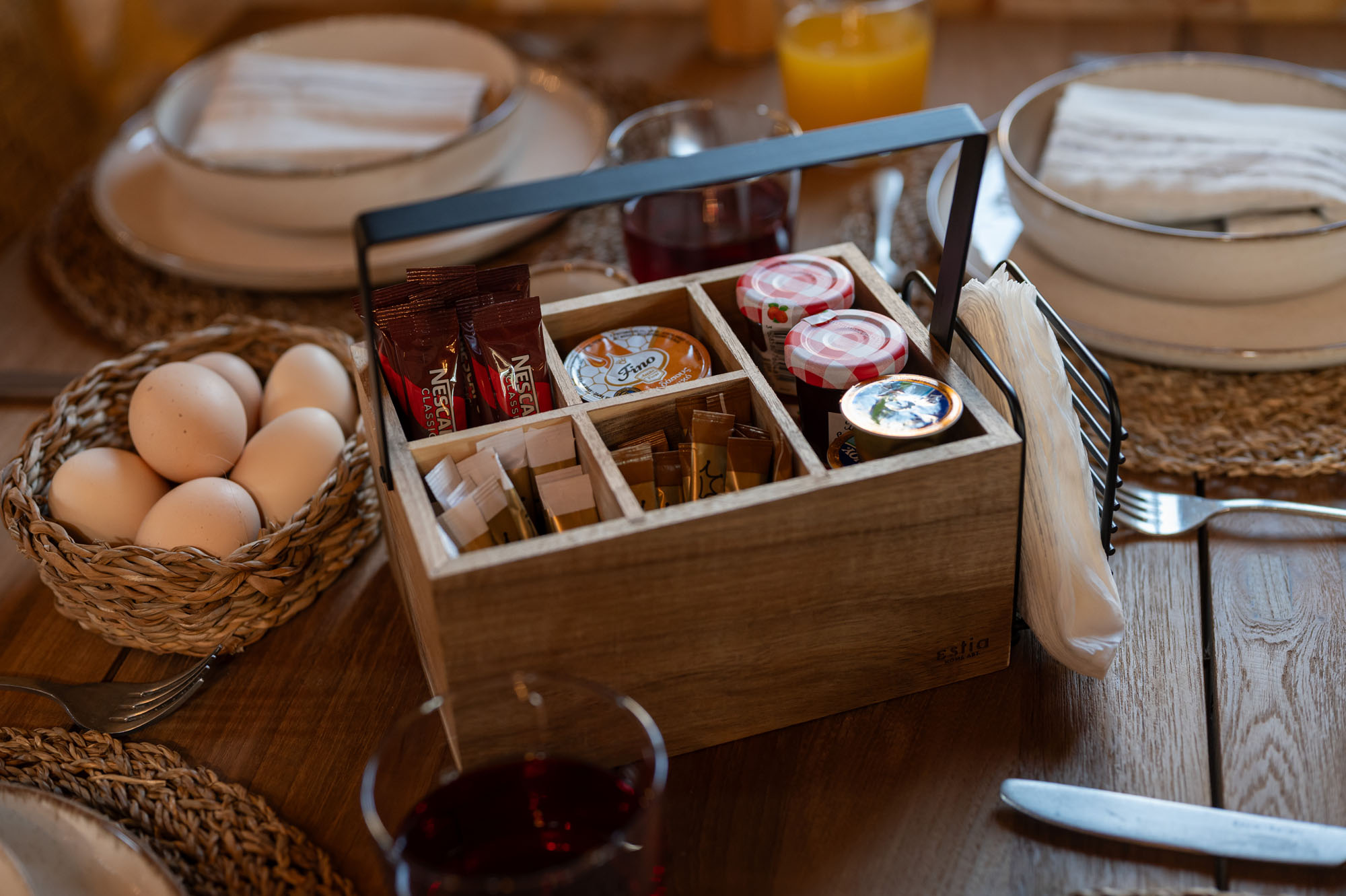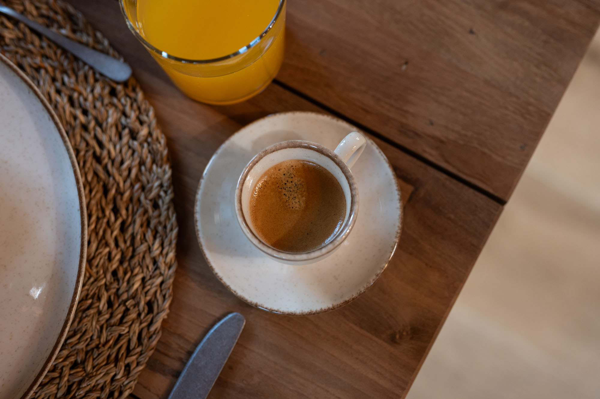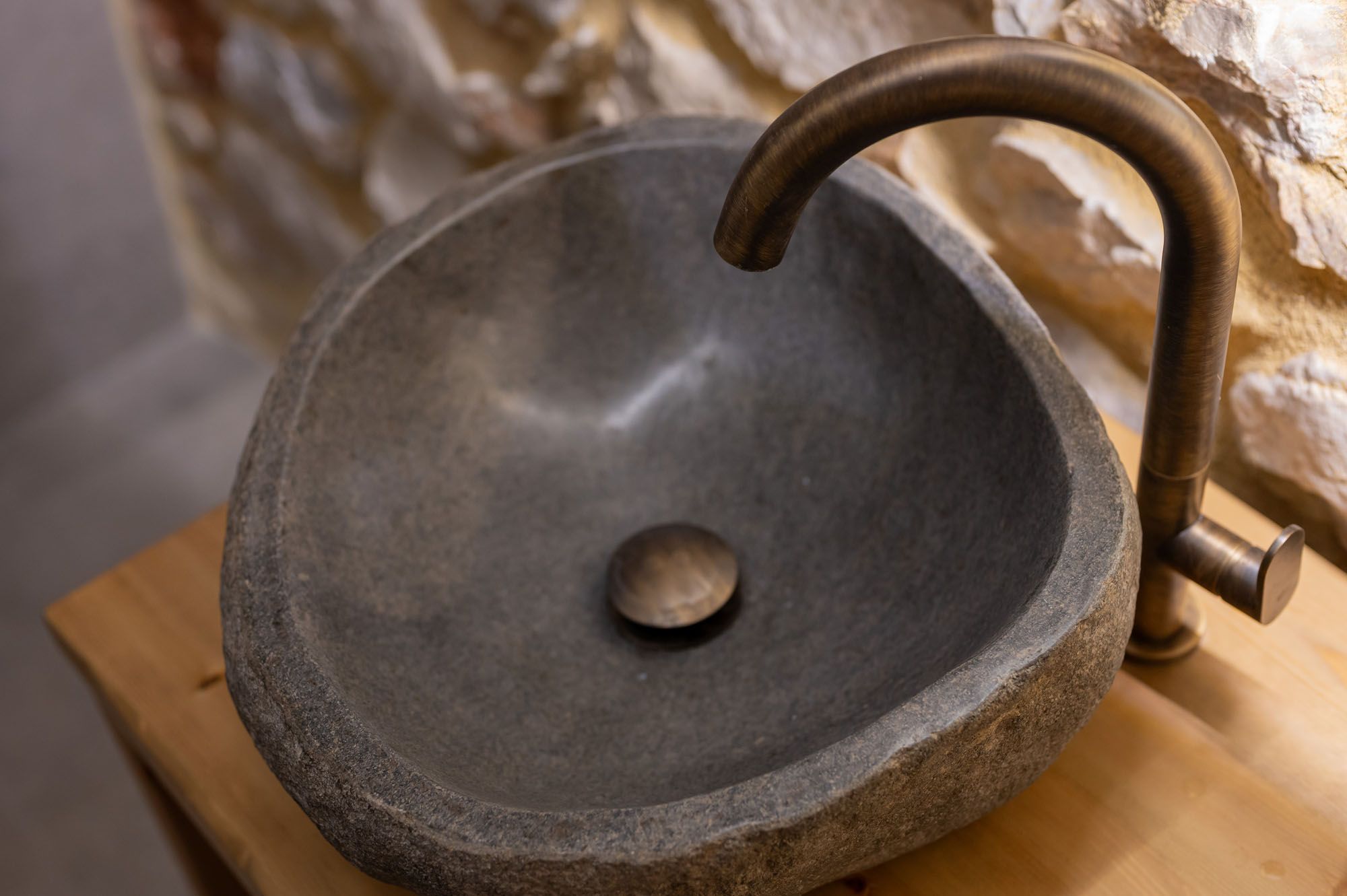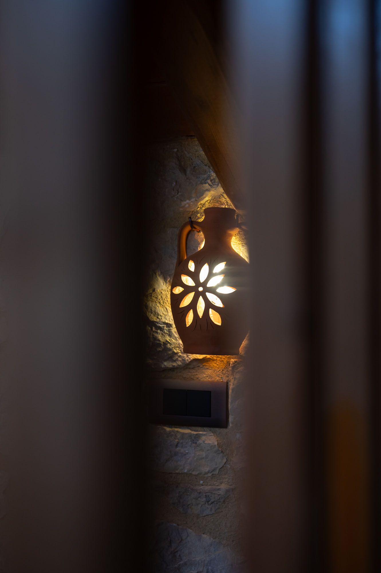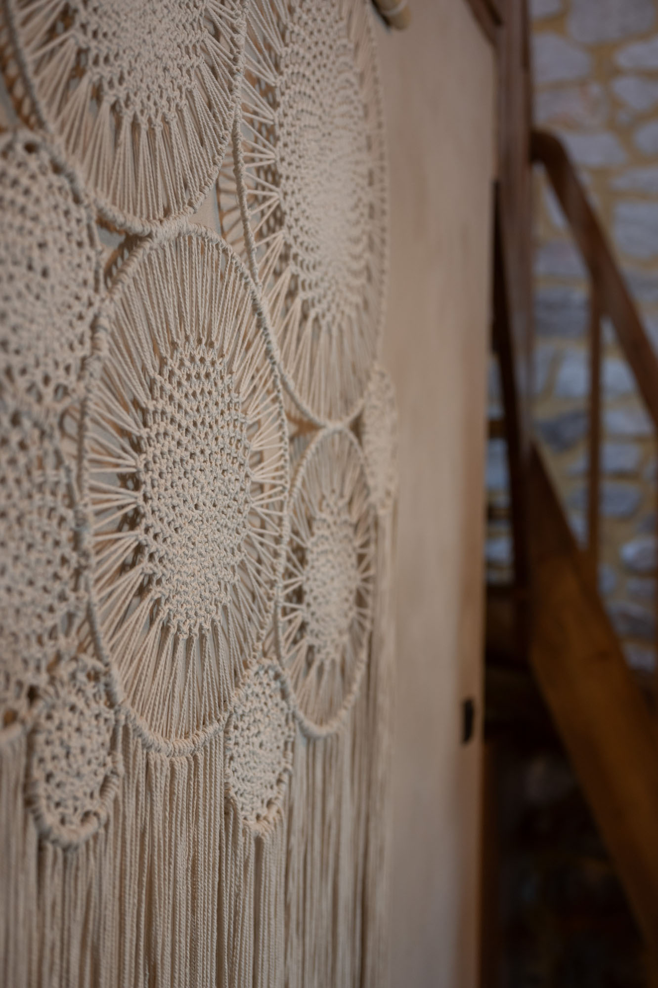 Two bedrooms, one on the ground floor and one in the loft, meet the needs of families or groups while preserving privacy and distinct character. The ground floor bedroom stands out for its warmth and traditional charm, enriched with modern touches that add finesse and brightness. The loft features a minimalist and atmospheric decor with rattan and metal accents, creating a serene space for relaxation and reflection, while the skylight brings the sky inside, allowing natural light to fill the room.
